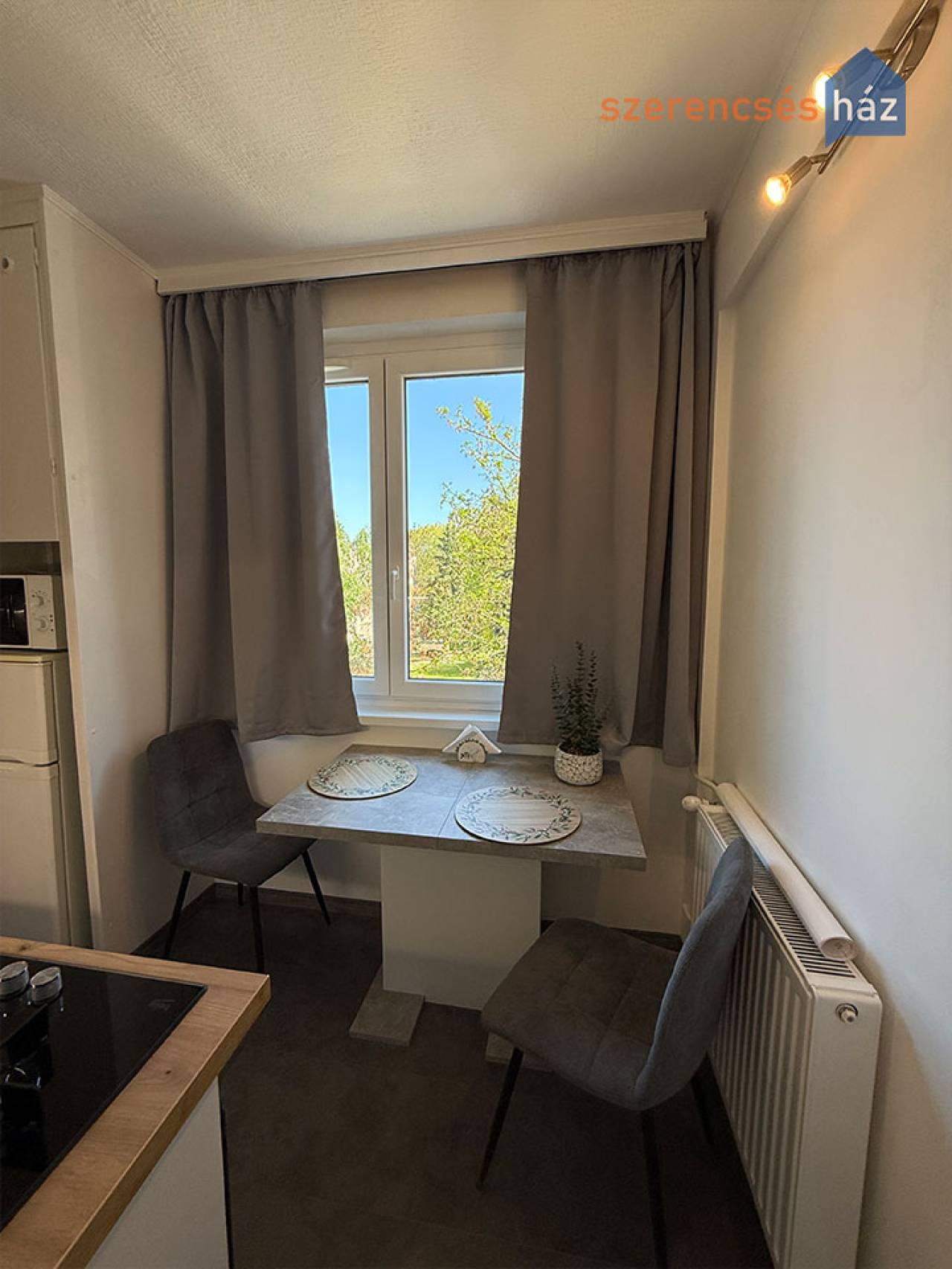 - az új konyhaasztal székekkel, a függönyök, lámpák és az előszoba komód a vételár részét képezi