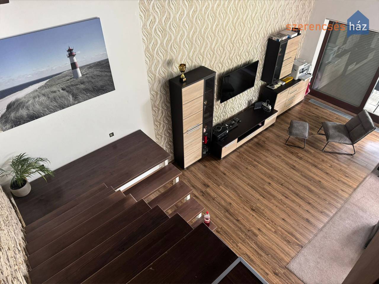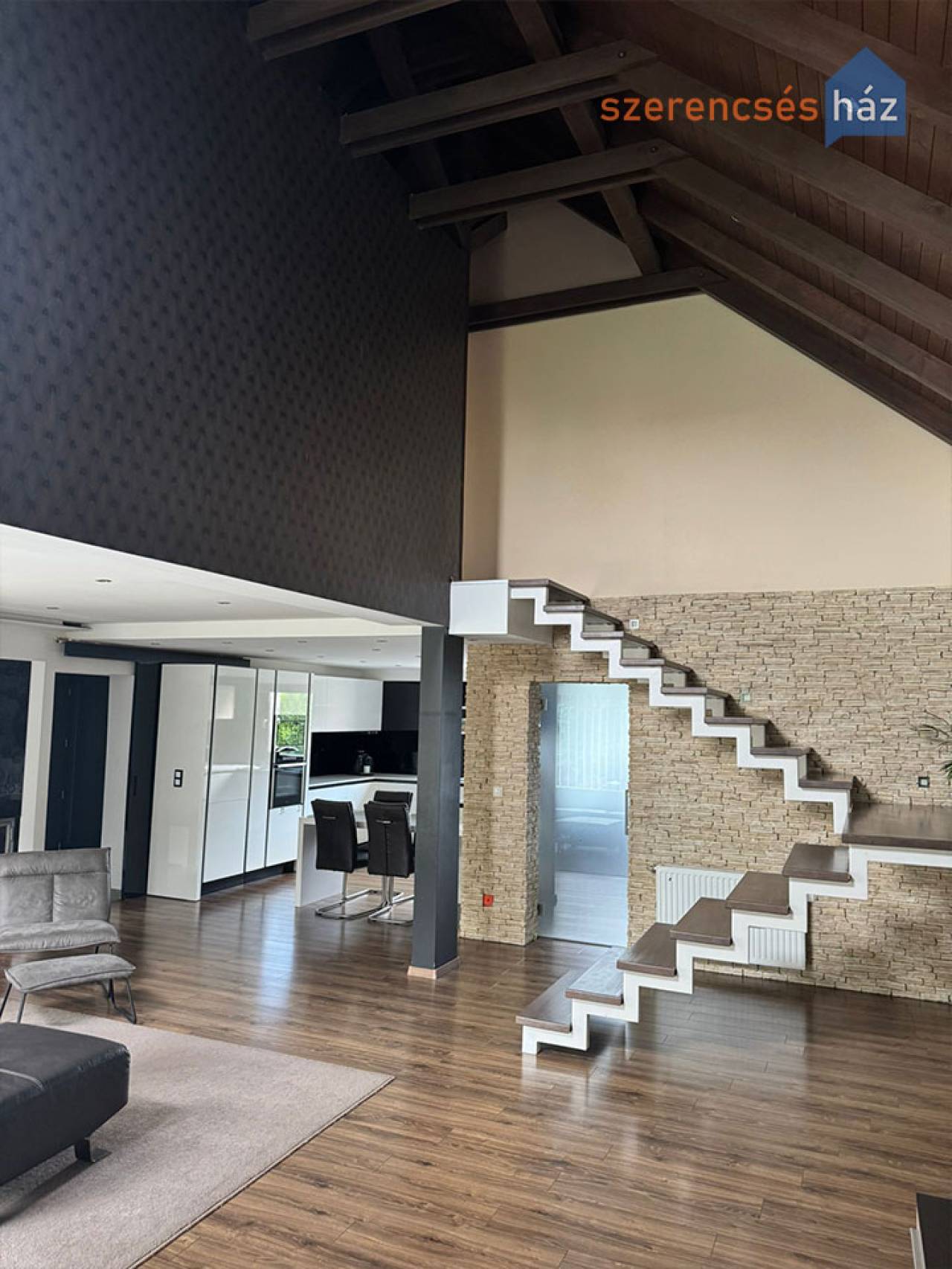 - 2013-ban épült egyedi tervezésű és stílusú, belső kétszintes családi ház