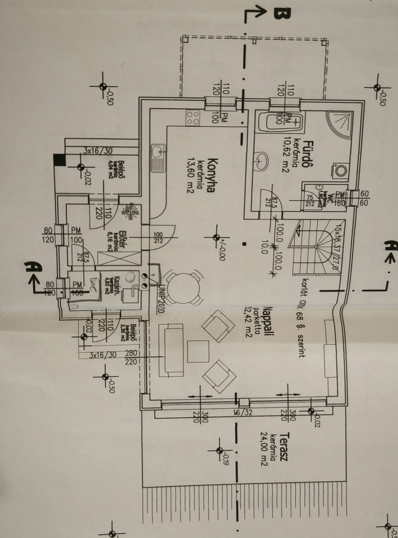 Földszint: amerikai konyhás nappali, fürdőszoba, kamra, wc, előszoba, terasz, dupla garázs